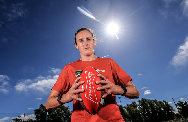 Budweiser is the official beer of the Aer Lingus College Football Classic this August. The Northwestern Wildcats will take on the Nebraska Cornhuskers in Dublin’s Aviva Stadium. Pictured at the launch is Dublin senior footballer Hannah Tyrrell. Dan Sheridan/INPHO