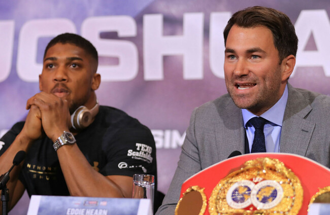 EDDIE HEARN HAS labelled Deontay Wilder’s $50million offer to Anthony Joshua for a heavyweight unification fight as a “PR move” and said “we can’t afford to accept a deal that doesn’t exist.”