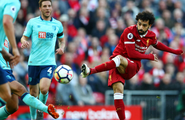 Egypt winger Salah pulled five clear again with a superb header in the 3-0 win at home to Bournemouth, though, with Sadio Mane and Roberto Firmino getting the other goals.