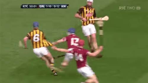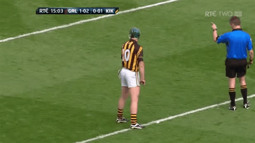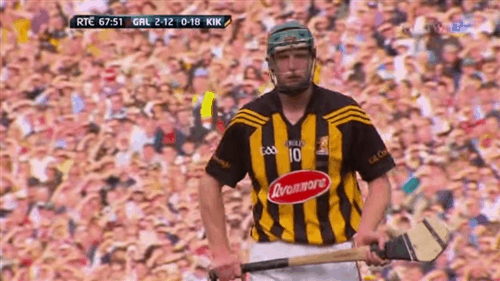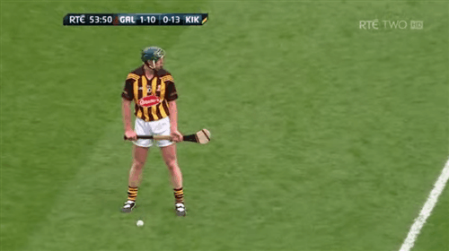 4: Kilkenny boss Brian Cody had pitched Shefflin in on top of Galway defender Fergal Moore, in an attempt to exploit a height advantage. Shefflin’s aerial ability allows him to execute a clean catch before he’s fouled by Moore for a Kilkenny free. Shefflin converts for the opening point of the game.