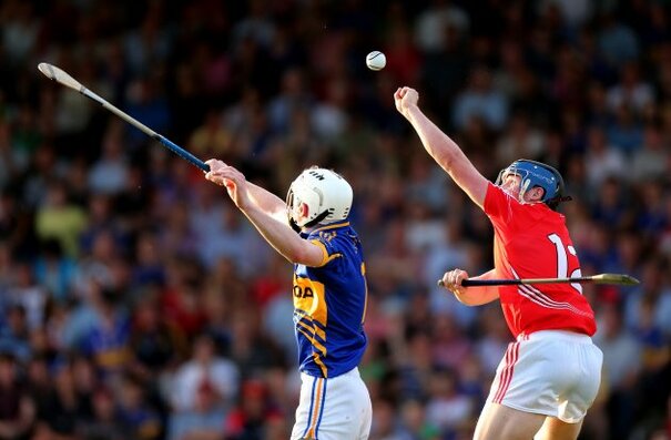Two players during the Munster U21 HC semi-final between Tipperary and Cork