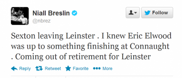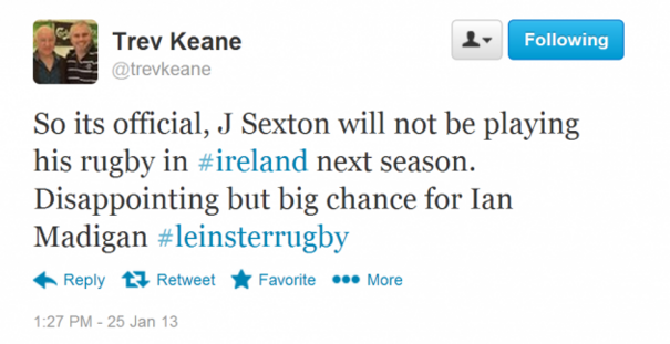Ian Madigan Jonny Sexton Leinster Leinster Racing Metro Reaction Ronan O'Gara Twitter Wave Goodbye