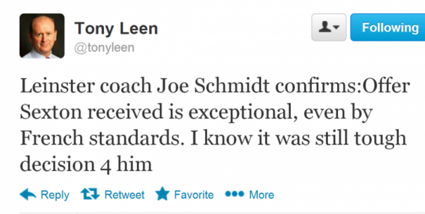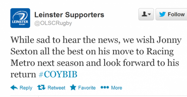 Here's how Twitter reacted to Jonny Sexton leaving Leinster