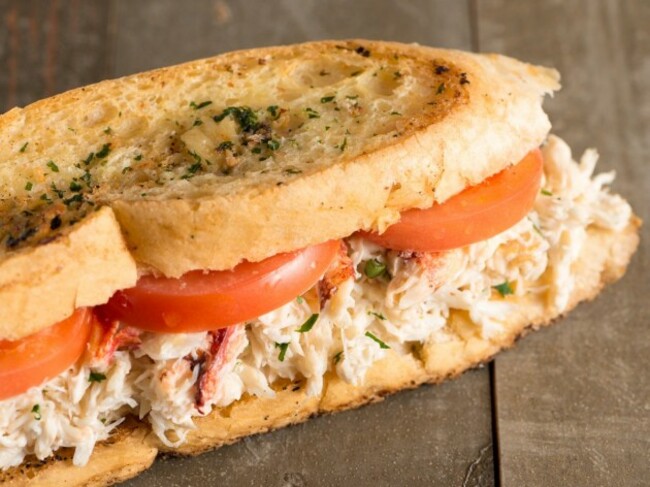 Description: Sweet, lightly dressed Pacific crab served with vine-ripened tomatoes on grilled garlic sourdough.