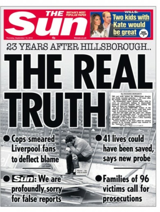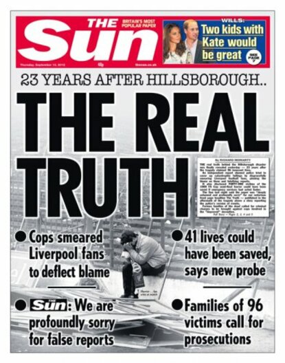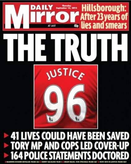 “The Truth” was the banner headline infamously used by The Sun 23 years ago as they reported false allegations that supporters picked the pockets of the dying and urinated on police.