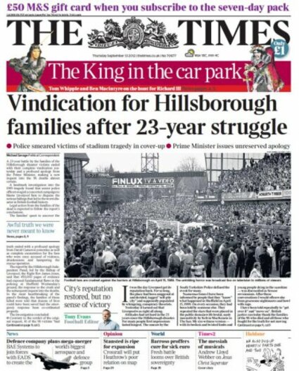 'The Real Truth': how Hillsborough is reported on Thursday's front pages