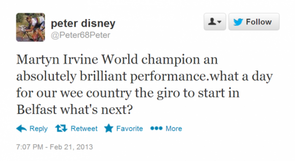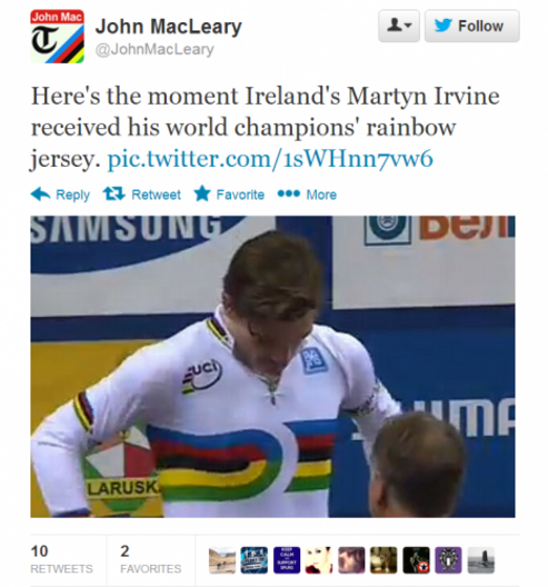 116 years double medal success Gold Martyn Irvine Reaction Twitter Twittersphere World Championships