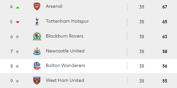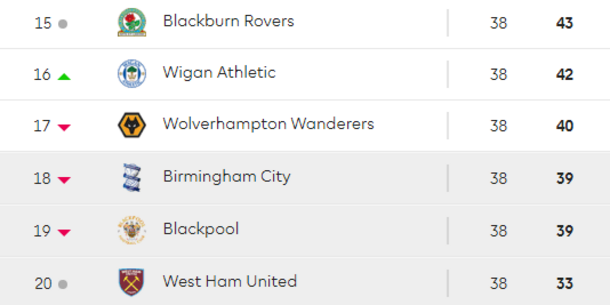 Identify Blackpool's one and only season in the Premier League.