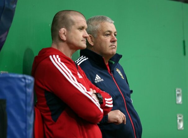 Richie Gray and Alun Wyn Jones with Ian Evans