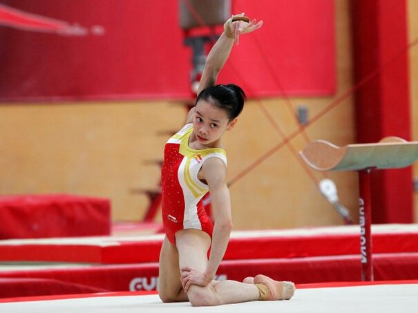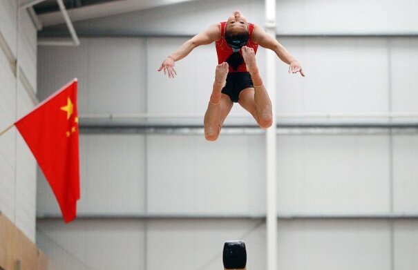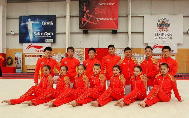 Today, the Chinese gymnasts — who are based in Lisburn – were put through their paces in the Salto facility. Here’s how it looked: