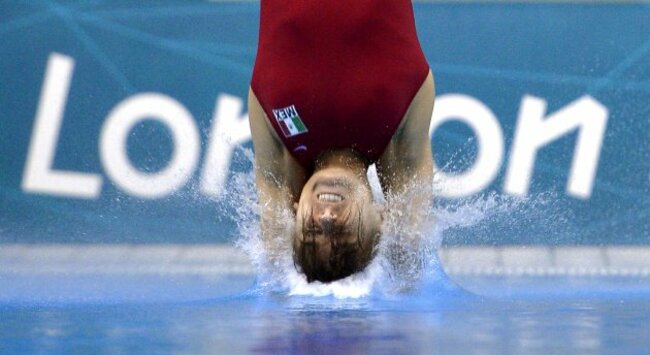 Paola Espinosa Sanchez of Mexico dives during the women’s 10-metre platform. (AP Photo/Mark J. Terrill)