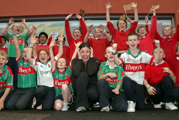School children fom Saint Joseph's primary school with their teacher Caitriona Canney, a Donegal native