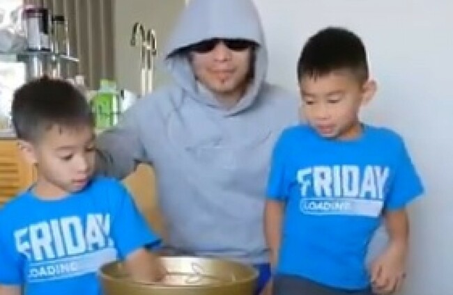 Donaire's sons enjoy their time with the Muhammad Ali Trophy.