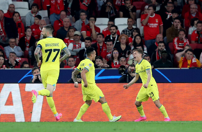 INTER MILAN PUT one foot into the Champions League semi-finals with a comfortable 2-0 win at Benfica on Tuesday, with Nicolo Barella and Romelu Lukaku netting in Lisbon.