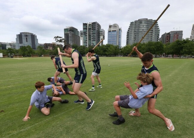 But what exactly is going on here as Pearce Hanley, Colm Begley, Mattie Donnelly and Colm Begley are spotting wielding sticks in Melbourne against some young locals?