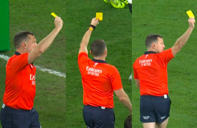 Carley brandishes his yellow card for the first time in the 20th minute after TMO Jackson flags another incident.