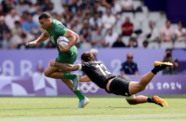 THE IRELAND MEN’S 7s team will face defending back-to-back champions Fiji in the Olympic quarter-finals this evening in Paris [KO 9pm Irish time, RTÉ2] after losing their last pool game against New Zealand on a 14-12 scoreline.