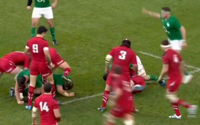There were other examples of similar stuff throughout the game, but we’ll use an example from the second half to illustrate the frustration Wales were starting to feel. This time it’s Peter O’Mahony who avoids the first-up chop tackle by using some decent footwork.