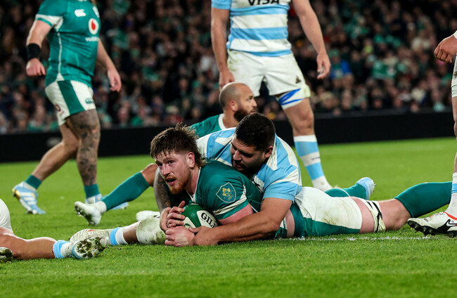 TRY! Ireland 12-0 Argentina (Mack Hansen ’5)