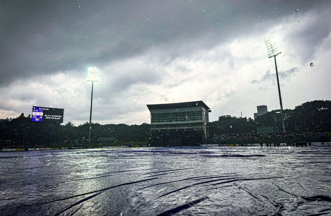 Persistent drizzle all day at the Pallekelle stadium kept the covers on, and the umpires finally called it off at 5:30 pm local time (1200 GMT) with no prospect of beginning the minimum five-over match before the 6:10 pm cut-off time.