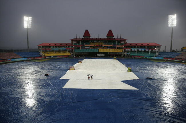 But heavy rain and thunderstorms in Dharamsala forced the match to be abandoned after just eight overs, with Bangladesh on 94/2.