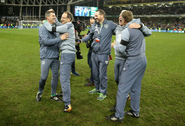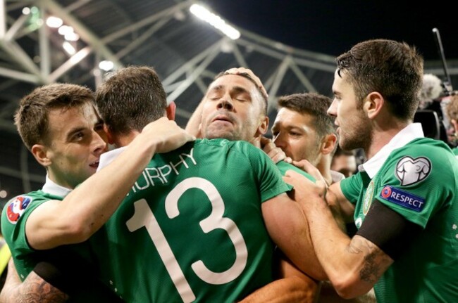 Cyrus Christie, Aiden McGeady, Dick Redmond, David Forde, Jeff Hendrick and Wes Hoolahan celebrate