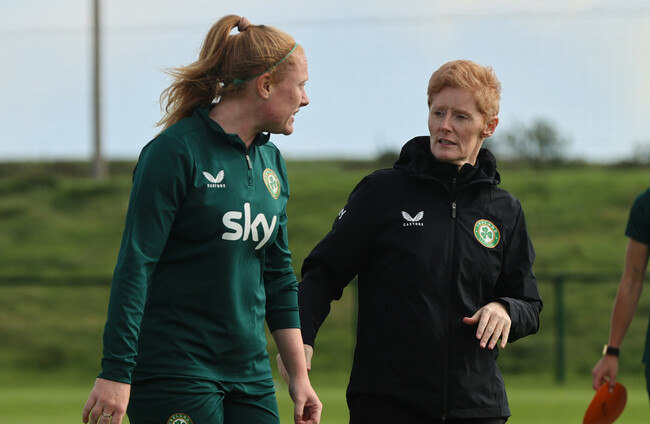 Interim Ireland manager Eileen Gleeson with Amber Barrett. Tom Maher/INPHO