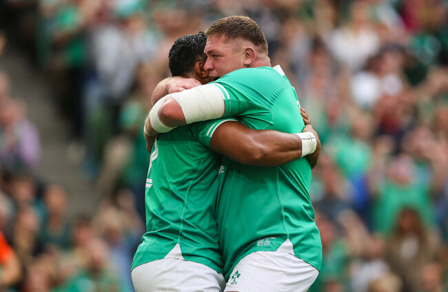 IRELAND: Hugo Keenan; Mack Hansen, Garry Ringrose, Bundee Aki (HIA – Jack Crowley ’59 to ’70), James Lowe (Keith Earls ’59); Ross Byrne (Jack Crowley ’70), Jamison Gibson-Park (Conor Murray ’67); Andrew Porter (Jeremy Loughman ’73), Dan Sheehan (Rob Herring ’38), Tadhg Furlong (Finlay Bealham ’57); Tadhg Beirne, James Ryan (captain); Peter O’Mahony (Joe McCarthy ’53), Josh van der Flier, Cian Prendergast (Caelan Doris ’70).