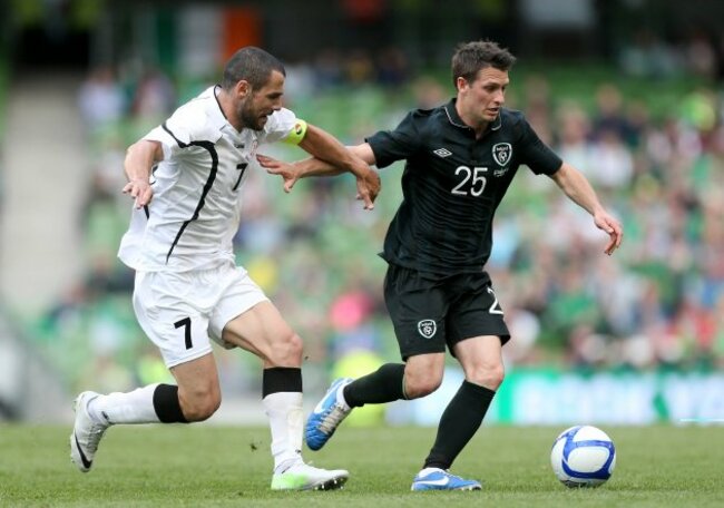 Hoolahan on the ball against Georgia. Credit: INPHO/Ryan Byrne