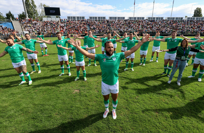 It was impossible not to notice how relaxed the Irish players were, how much they enjoyed a day that could have been a drag. Why shouldn’t they be giddy? 18 of the squad are at their first World Cup and their excitement was palpable. Having done a Viking Clap with 12,000 locals earlier in the day, they repeated it among the dignitaries later on, Jamison Gibson-Park the ringleader. The mayor of Tours loved it.