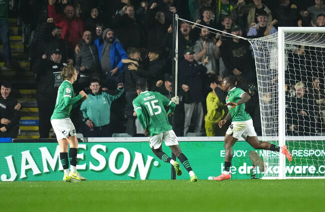 The 24-year-old Republic of Ireland striker muscled Pompey skipper Regan Poole off a long through ball from Argyle keeper Dan Grimshaw before smashing a first time low strike into the corner past keeper Nicolas Schmid.