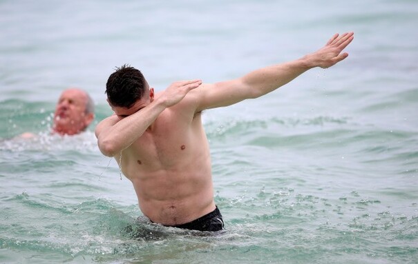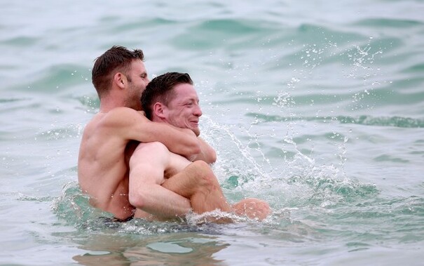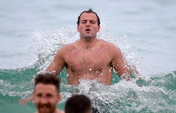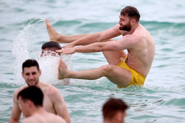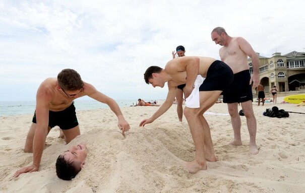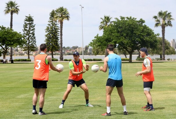 Joe Kernan’s squad had a training session earlier today in Perth’s Langley Park, before they retired to Cottesloe Beach for a recovery swim.