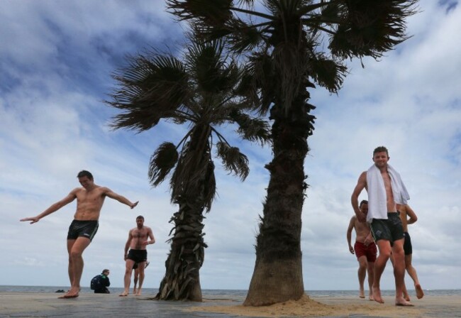 Ireland's International Rules squad head to the beach in Melbourne for recovery session