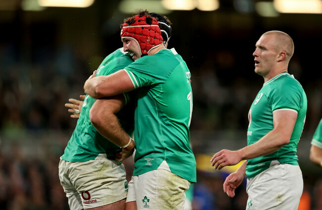 If you wanted to pick holes in the performance up to that point, you might question if Ireland could have been more ambitious with some of their play. The three first-half tries – from Dave Kilcoyne, Caelan Doris and Stuart McCloskey – all came from close range and were a result of Ireland being physically dominant; Kilcoyne crashing over from a tap-and-go, Doris bulldozing through from a lineout maul and McCloskey staying alert to score after brilliant work on the ground by Doris – who had a storming game in the less familiar surroundings of openside.