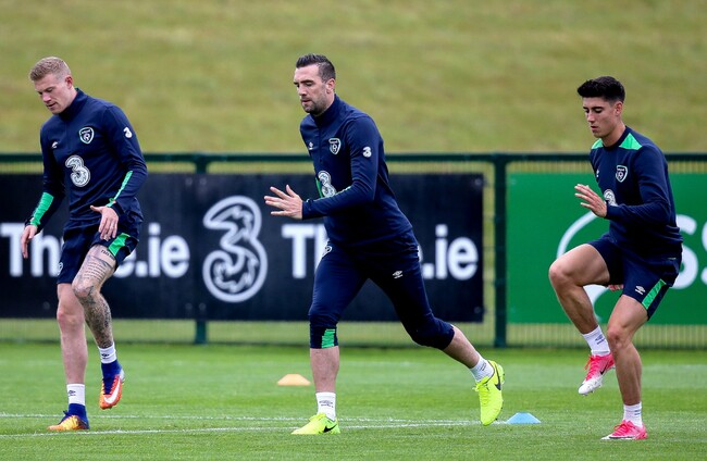 After their car accident yesterday, Shane Duffy and Eunan O’Kane took full part in the session. The pair were travelling to Dublin in O’Kane’s vehicle when they were involved in a pile-up.