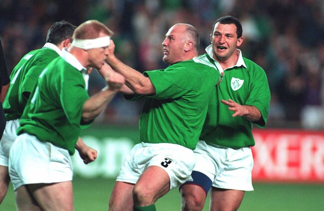 So as New Zealand racked up a 19-43 win that was their second-largest winning margin over Ireland (it’s been bumped down to seventh since), there was greatness in the slight form of Andrew Mehrtens wafting in among the super-charged forwards like current Japan coach Jamie Joseph, Sean Fitzpatrick and Ian Jones. And there was awe at the 18 stone Lomu could carry round at such pace.