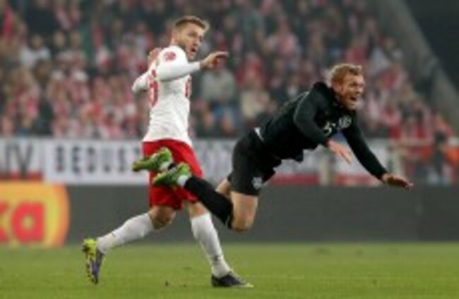 Ireland’s first attack sees Aiden McGeady come inside and run at the Polish backline. The visitors sine a couple of throw-ins and keep possession for a couple of minutes. Polish captain Jakub Blaszczykowski eventually wins back the ball.