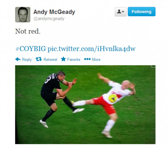 St Ledger heads clear under pressure from Robert Lewandowski and the Borussia Dortmund striker wins a free-kick 40 yards out from goal. His club mate Blaszczykowski’s delivery is poor, however.