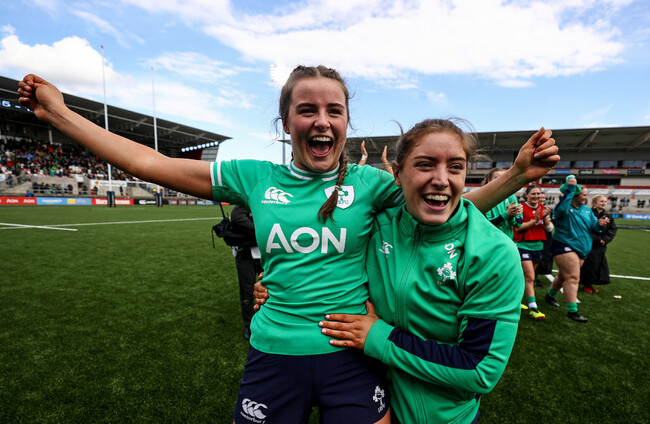 Ireland's Shannon Ikahihifo celebrates with Eve Higgins. Ben Brady / INPHO