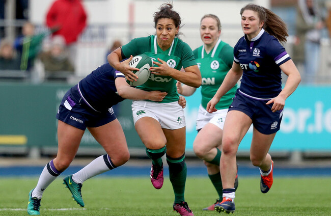 Williams’ kick and chase pinned Scotland back inside their own 22 and the outstanding Claire Molloy took player and ball, allowing Fitzpatrick to complete the turnover on the ground. Ireland flooded the ruck, before moving it through the hands with Peat pumping the legs to bring the hosts within five metres.