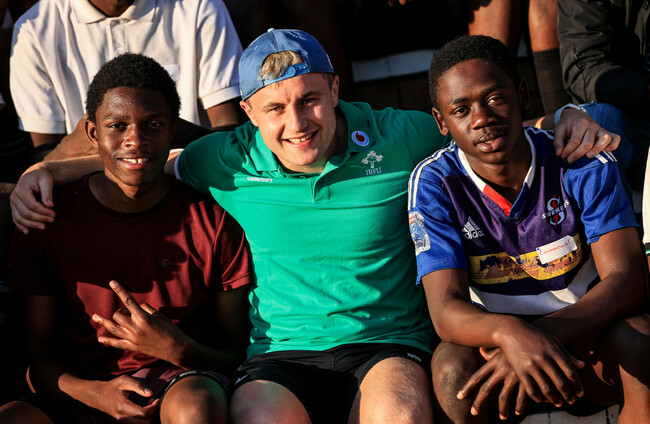 Then it’s on to St Peter’s College for Ireland’s meeting with young players from the township of Alexandra, one of the poorest areas in the country. We don’t get to visit Alexandra, where the shacks and houses are crammed together and the population density is estimated at around 26,000 people per kilometre. Our base of Sandton, such a jarring contrast in its wealth, is right next door but a world away with a density of 1,500 per kilometre.