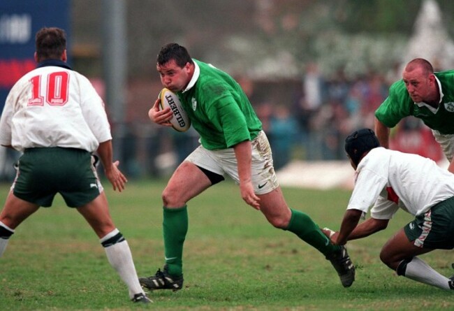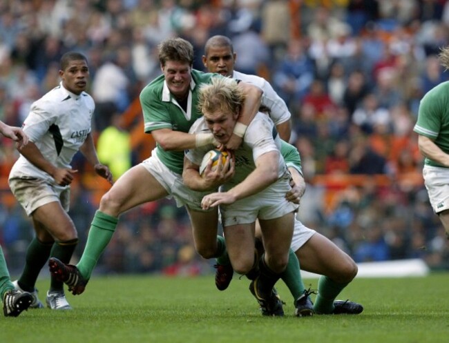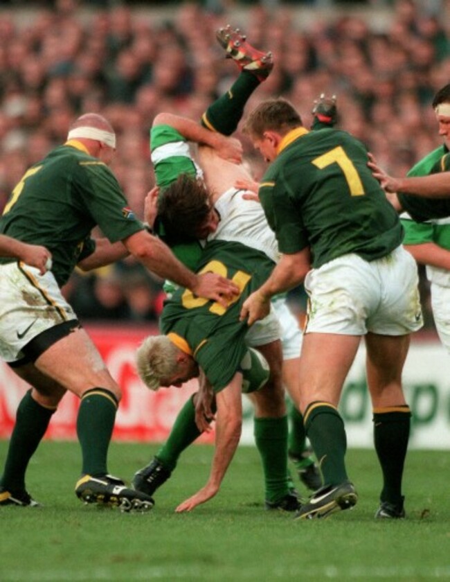 13. Victor Costello gets upended during a fight against South Africa in 1998