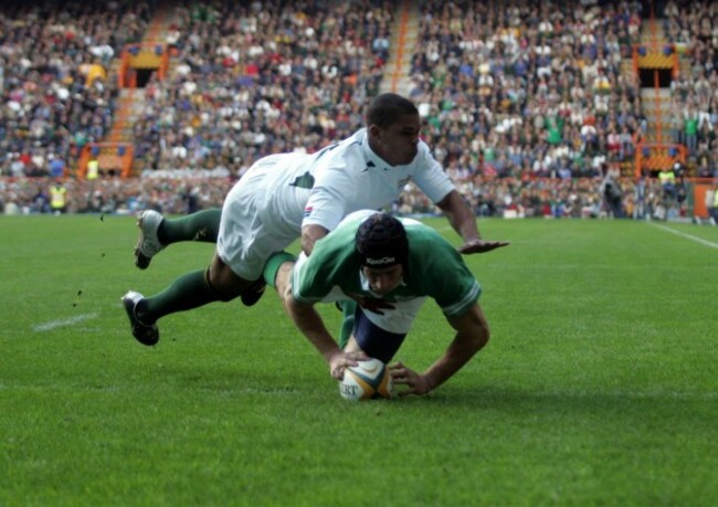 12. Tyrone Howe of Ireland scores a try despite Wayne Julies efforts in 2004