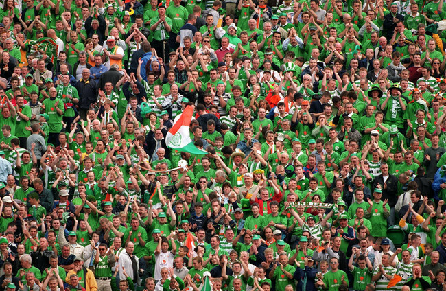 Ireland fans at Lansdowne Road on 1 September, 2001. INPHO