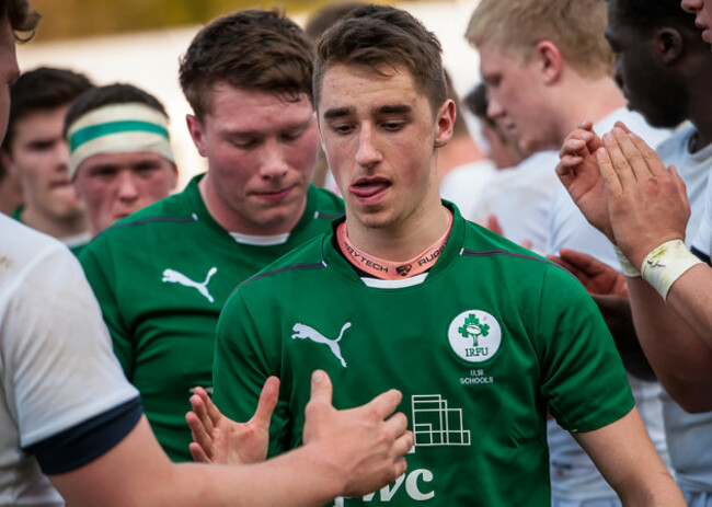 Power shakes hands after losing to England at U18 level. Szymon Gruchalski / INPHO