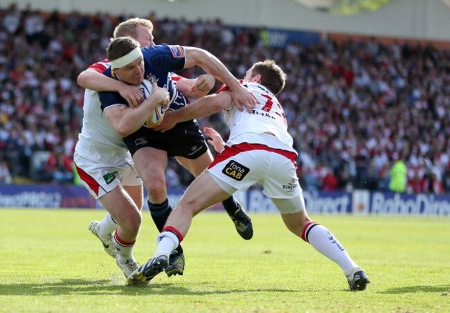 Olding and Cave tackle Brian O’Driscoll in the Pro12 Final. (©INPHO/Dan Sheridan)