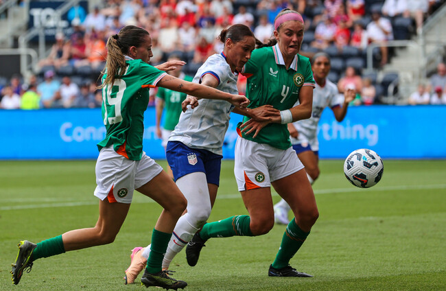 Ward responded with a triple change at the break, and tweaked her shape to a back three/five, with Hayley Nolan and Lucy Quinn introduced as wing-backs. The US, however, continued to pile on the pressure and find gaps. They were relentless as they played any which way, upping the tempo as Irish legs tired.
