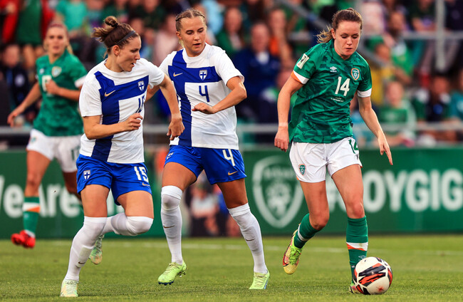 Great header from Louise Quinn to fire the ball away from the Ireland box. Denise O’Sullivan gets on the ball but credit to Finland, they surround her and force a turnover.