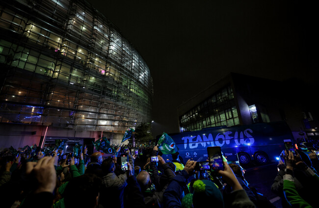 Ten minutes or so ’til kick-off here at the Aviva Stadium.