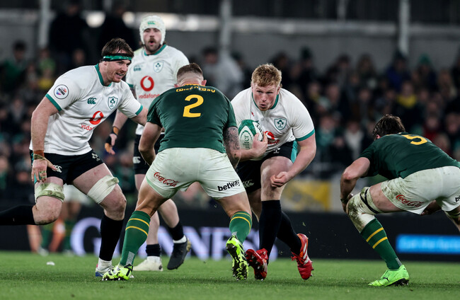 1. Andrew Porter (Leinster) – 5: Came out decidedly second best against Thomas du Toit and Wilco Louw in the scrum, but was himself the fall guy for Ireland’s scrum massacre — his yellow card arguably belonged to Tadhg Furlong. Had some significant moments in the loose and helped to halt a rolling Bok maul just shy of the half-hour mark.